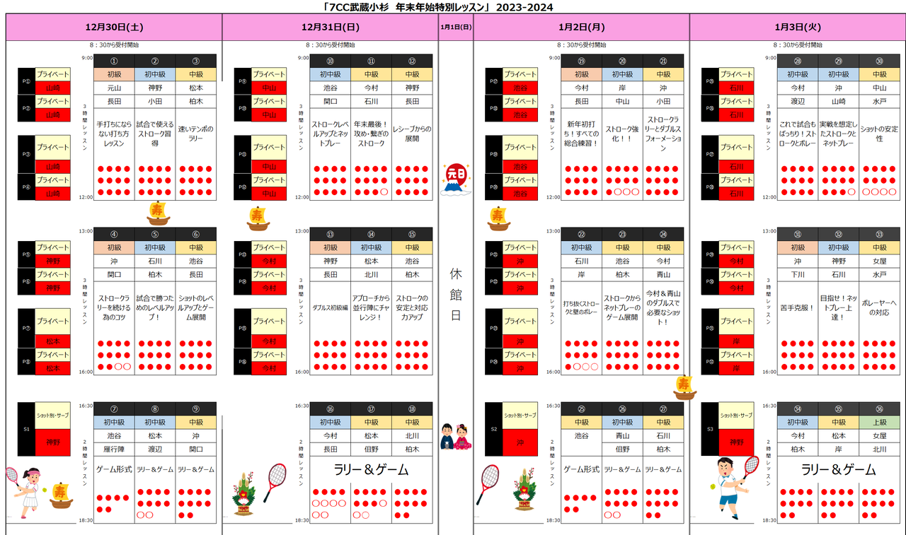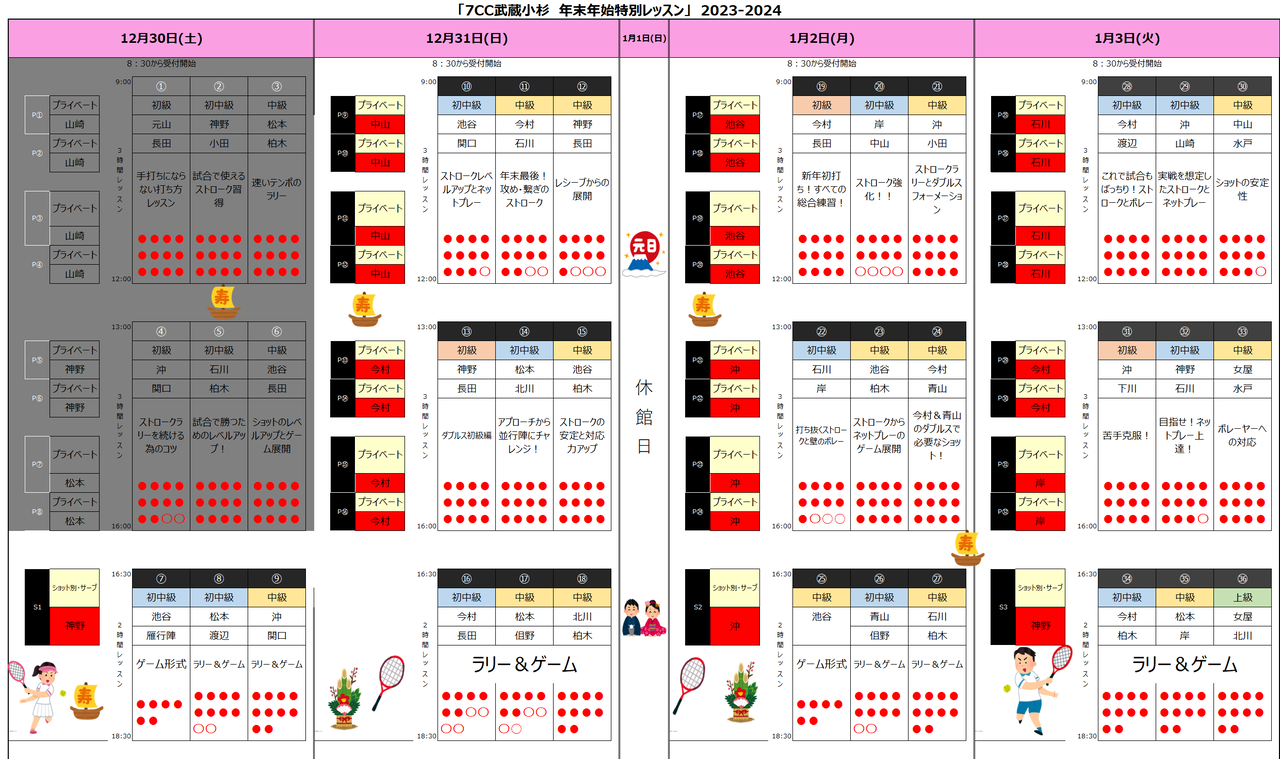 来年も武蔵小杉テニススクールをよろしくお願い致します