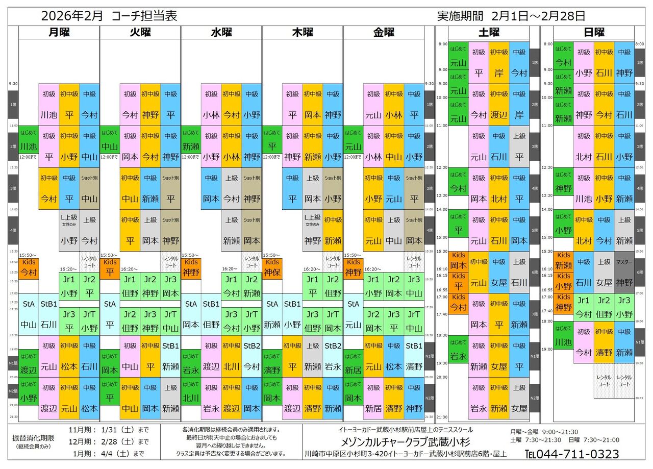 セブンカルチャークラブ武蔵小杉テニススクールはセブン&アイHLDSのテニススクール