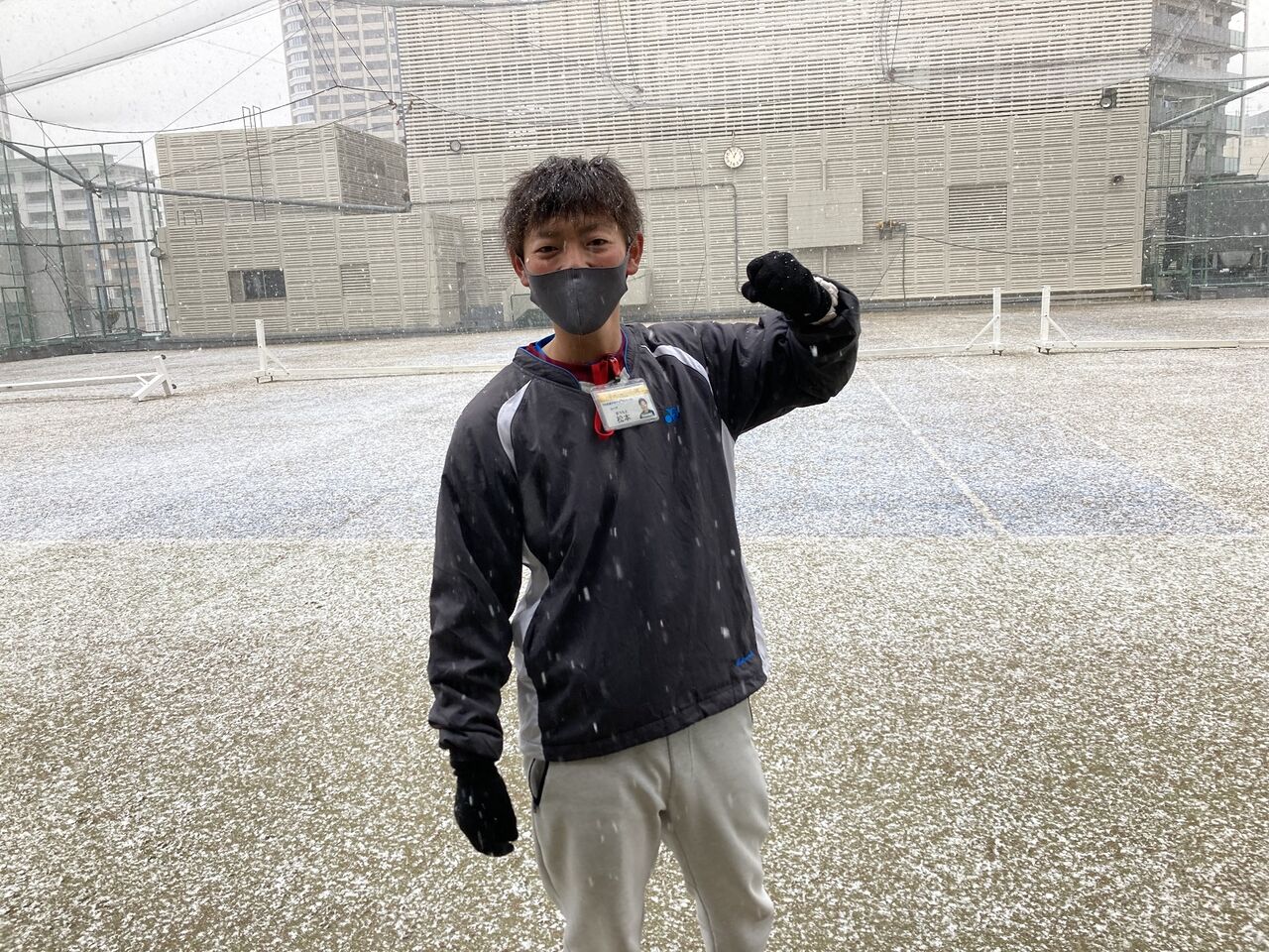 レッスンが中止となり、コートから人がいなくなるとあっという間に雪が積もりました。