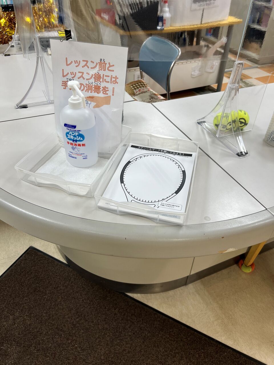 フロントのカウンターにあります。